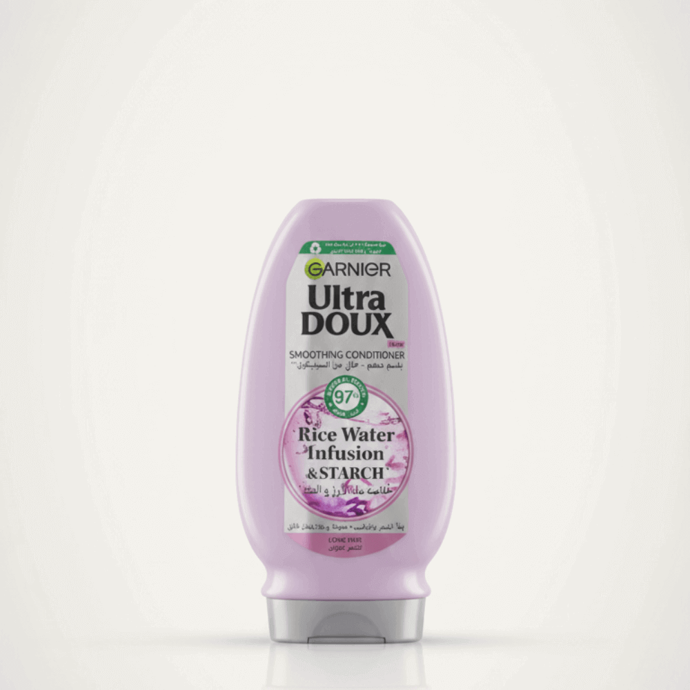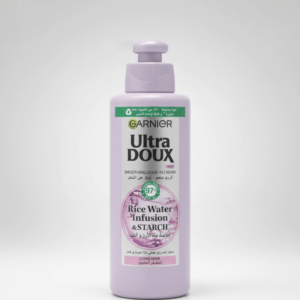 دللي شعرك مع مجموعة Garnier Ultra Doux الغنية بمستخلص ماء الأرز والنشا، المعروفة بقدرتها العالية على الترطيب والتغذية. هاد المجموعة مثالية للشعر الجاف، الباهت، والمتقصف، وكتوفر عناية شاملة من الجذور حتى الأطراف.