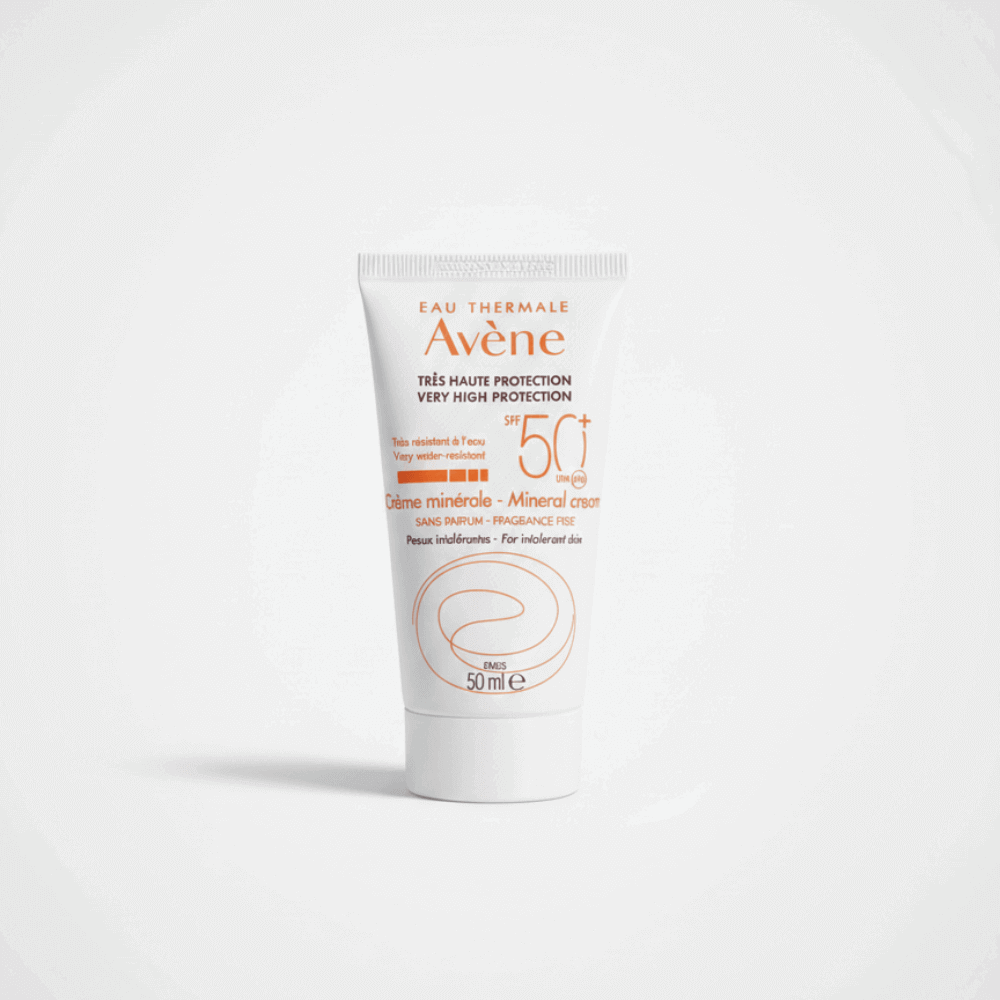 Avene Mineral SPF50+ كريم من يعتبر من أفضل الخيارات للبشرة الحساسة وغير المتقبلة.